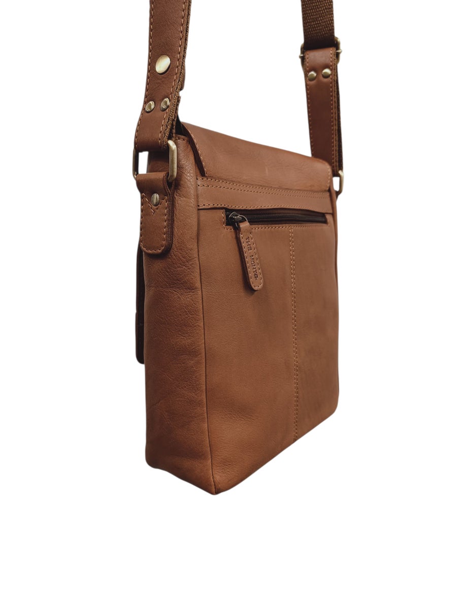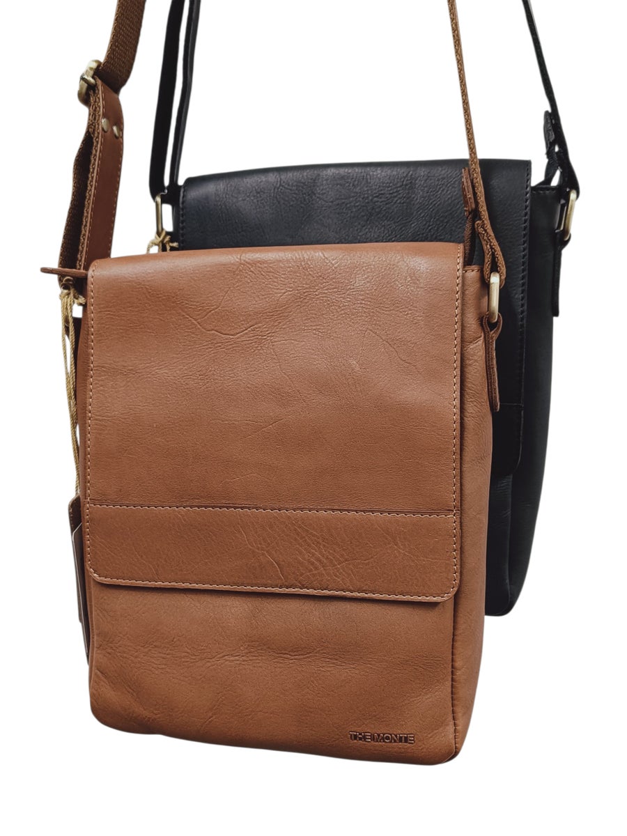 Hienosta nahasta valmistettu Monte laukku viimeistelee miehen tyylin. A5 kokoinen olkalaukku, johon sopii vaikka tabletti ja muuta tärkeää. Etupuolella läppä, jonka alla vetoketjusuljin. Laukun takaa löytyy vetoketjutasku. Sisällä vetoketjutasku ja avotasku puhelimelle.